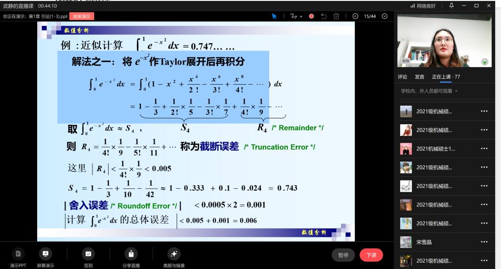 “同学们都能听到我的声音吗?今天我们来上新学期《数值分析》的第一课。”在电脑荧幕前,机械工程学院专任教师武静正在细致地为2021级机械硕士研究生讲授课程。为了保证课堂效果,武静提前和每位同学测试各个平台的直播效果并最终选定了企业微信。“因为有过在线教学的经验,备课方面和硬件设施等不存在太大困难。”