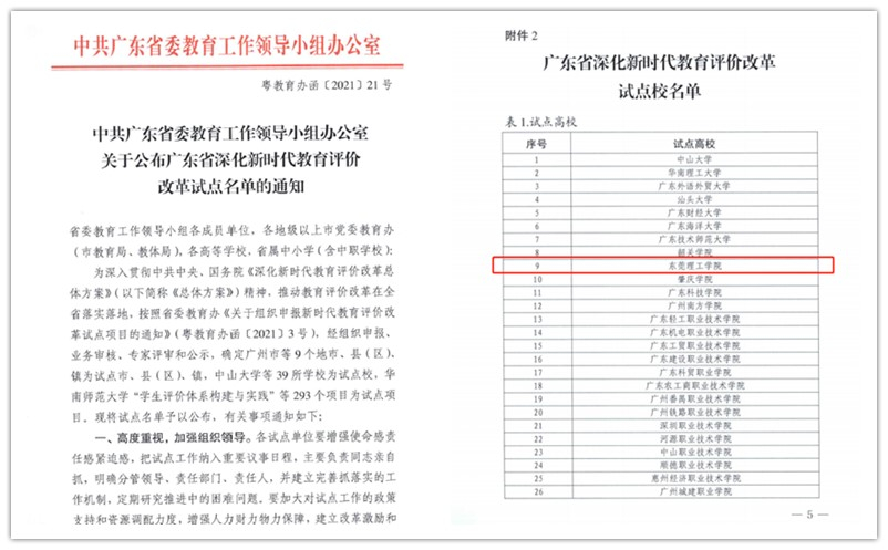 近日,省委教育办公布了省深化新时代教育评价改革试点名单,开云入选成为广东省深化新时代教育评价改革试点校。今年3月,为深入贯彻中共中央、国务院《深化新时代教育评价改革总体方案》精神,推动教育评价改革在全省落实落地,省委教育办开展新时代教育评价改革试点项目申报工作。开云高度重视,积极申报综合改革试点,由改革办牵头组织改革专责组认真研究形成学校试点校方案。经省委教育办组织业务审核、专家评审、公示,最终确定开云和中山大学等共26所高校为改革试点高校(其中本科院校12所、高职院校14所)。