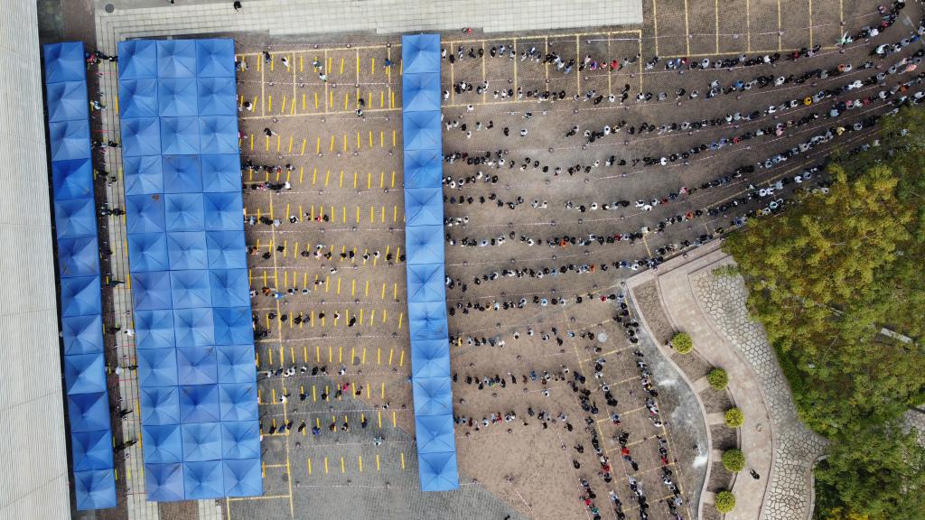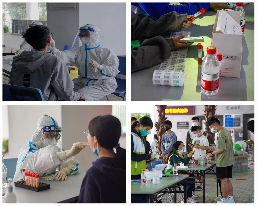 本次核酸检测采样工作中,松山湖校区由松山湖中心医院、康华医院共派出28位医护人员到场,莞城校区由东莞市莞城医院共派出12位医护人员到场,师生员工在各二级单位组织下,提前备好“葵花码”,佩戴好口罩,按照要求依序排队等候,现场井然有序。