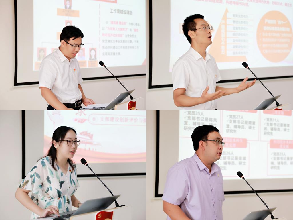 电气与自动化教师党支部、“双带头人”教师党支部书记工作室任斌工作室介绍了“党建工作样板支部”以及工作室的申报经历,分享了党建业务深度融合,引领教学科研竞赛开创新局面的建设经验。机关第一党支部分享了“党建工作样板支部”的创建思路,撰写申报书的心得、落实创建任务的举措和下一步工作计划。教育学院(师范学院)学生第一党支部总结了样板支部建设的情况,介绍了“不忘初心使命,永葆教育情怀”党建品牌,提出了支部建设提升计划。机械工程学院党委介绍了“党建工作标杆院系”创建以来的基本情况,分享了党建引领疫情防控、课堂教学、人才培养、社会服务等方面的经验。