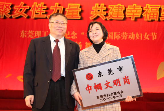 表彰大会上,经济贸易系基础课教研室获得广东省“巾帼文明岗”称号;财务处获得东莞市“巾帼文明岗”称号;财务处计划科、后勤医疗保健中心、机械工程学院工业设计教研室、体育系巾帼文明服务岗、城市学院管理系获得学校“巾帼文明岗先进集体”称号;肖莉、刘媛、张乃沃、左耀辉、王晓春获得学校“巾帼建功先进个人”称号;许少衡、黄海宇家庭,曾熙、黎婉勤家庭,于国友、苗青家庭,陶世银、李朝霞家庭,陈玉珍、陈浩仁家庭共5个家庭获得学校“五好文明家庭”称号。