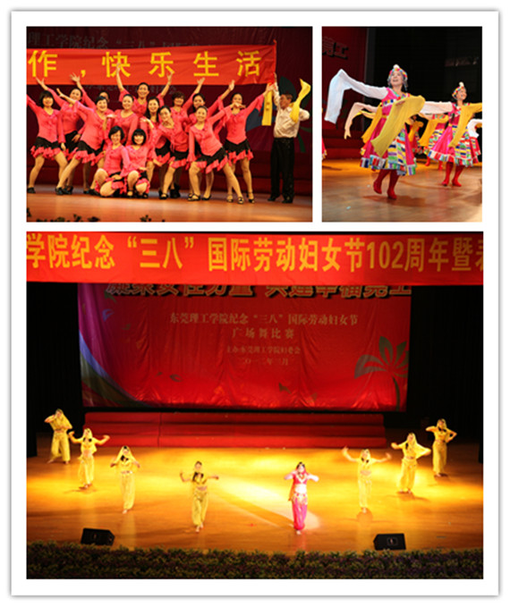当日,还举行了广场舞比赛。学校18个妇女小组代表队相继上场比拼舞技,共有200名女教职工参加表演,参与率超过了全校女教职工数的50%。民族舞、现代舞、健美操、集体交谊舞等不同风格的广场舞通过老师们的精彩演绎大放光彩。计算机学院、文学院、体育系、思想政治理论教学部等代表队表演的广场舞,不仅女教工参加,还有男教工参与助兴,引起了现场一阵阵热烈的掌声、欢呼声。