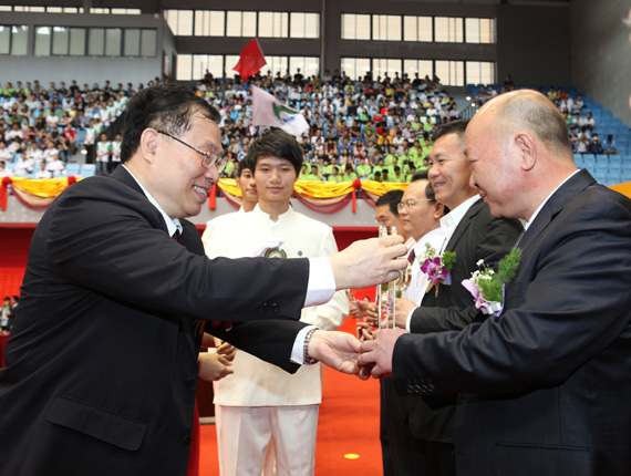 4月28日,在建校20周年庆祝大会,学校表彰了10名“莞工突出贡献奖”获得者,感谢他们为开云建设和发展作出的贡献;20名杰出校友,肯定他们为推动东莞经济社会发展作出的努力。学校领导杨晓西、黄碧莲分别为获奖者颁奖。