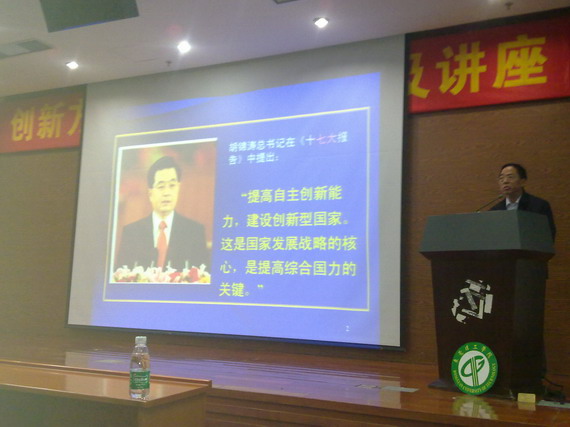 以新颖的理论,生动的语言和大量实例,深入浅出地为在场教师介绍了当今创新经济的特征和创新对于一个国家政治经济社会发展的重要性,分析了我国科技创新存在的问题,介绍了创新现代方法以及TRIZ创新理论。