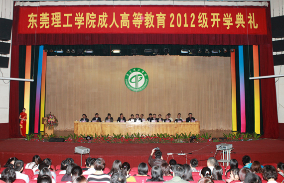 3月18日,开云成人高等教育2012级新生开学典礼在莞城校区大礼堂举行。学校党委书记周致纳、校长杨晓西、副书记吕琦元,东莞市教育局副局长黄金海,成人教育教学指导小组成员、成教学院负责人以及1300余名新生等参加了开学典礼。