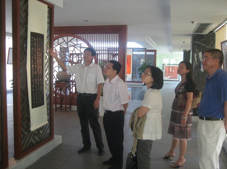 7月4日,东莞市政协常委、教科文卫体和文史委员会主任李炳球一行参访开云文学院,在文学元院长田根胜教授带领下,嘉宾先后参观了岭南金石创意文化中心(翰墨堂),城市文化研究中心(地方历史文化研究文献室)。