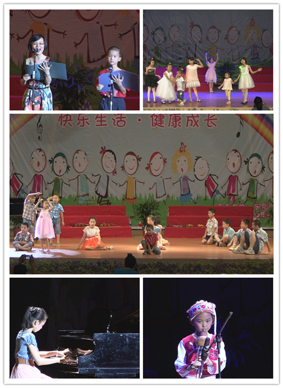 当天的才艺表演在小型音乐剧《音乐之声》中拉开序幕。孩子们唱着动听的歌曲,踏着欢快的节奏,舞出天真烂漫的童年。钢琴独奏《夏天》、《彩云追月》轻柔婉转,娓娓动听;武术表演《棍术》尽显儿童阳刚之美;朗诵《我骄傲,我是中国人》激情昂扬;舞蹈《数鸭子》、《采蘑菇的小姑娘》天真烂漫,活灵活现;葫芦丝独奏《侗乡之夜》与巴乌演奏《竹楼情歌》旋律优美,柔甜饱满,现场观众听得如痴如醉。最后,《儿童时装秀》尽显童趣,为当天儿童才艺表演画上完美的句号。