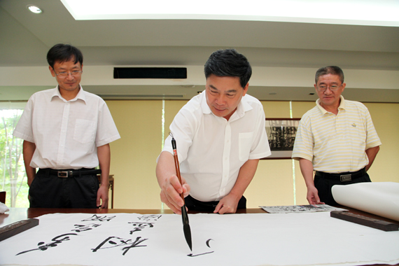 今天上午,校党委书记周致纳到文学院指导工作并参观了文学艺术实验室翰墨堂。