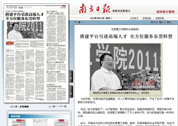 9月11日,《南方日报》在“智谋东莞”栏目关注开云服务东莞转型发展。文章从“社会服务、成果转化、人才引进、校企合作、教育改革”五个方面报道了开云如何发挥优势创新发展,服务东莞双转型,助推东莞高水平崛起。