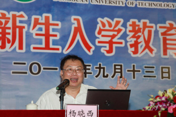 在谈到如何走向成功时,杨晓西告诫同学们,要树立志向、设定目标,做有作为的人。他说,考上大学不容易,知难更应珍惜。他希望同学们学会独立,懂得处理好教与学的关系,善于建立新型的师友关系,学会正确认识金钱和家庭背景。