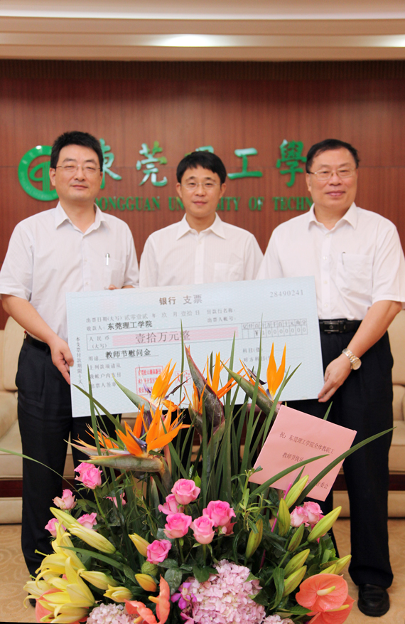 9月10日,是一年一度教师节。东莞市政府副秘书长、松山湖高新区工委书记、管委会常务副主任刘宁率松山湖管委会相关负责同志送来教师节的慰问和祝福,并向学校赠送了10万元人民币慰问金。