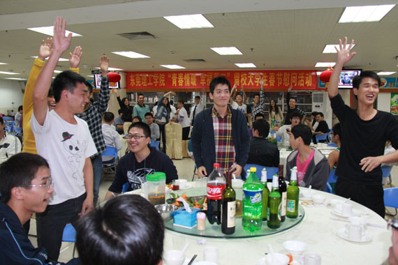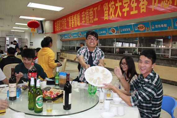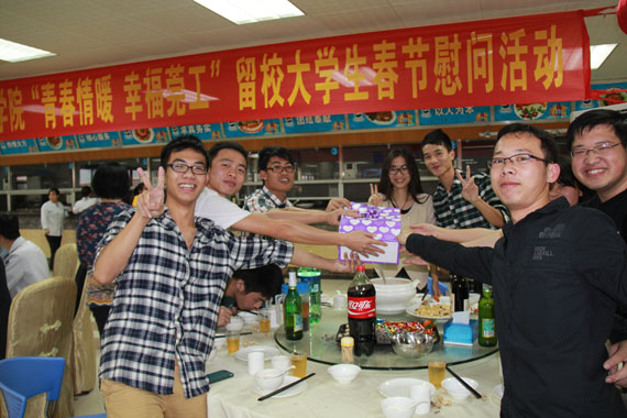 校党委副书记吕琦元、副校长李忠红和学校办公室、发展联络办、学生处、团委、后期集团等部门负责人以及部分老师与100多名留校过年的同学共进年夜饭,让留校过年的同学也感受到大家庭的温暖,在欢乐祥和的气氛中迎接新年的到来。