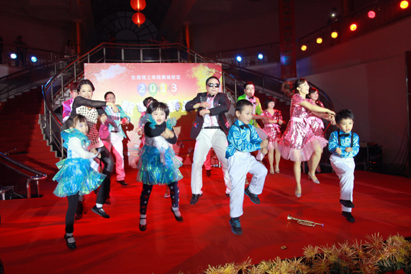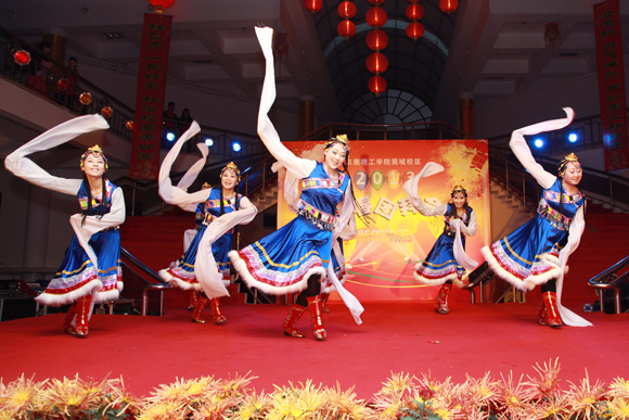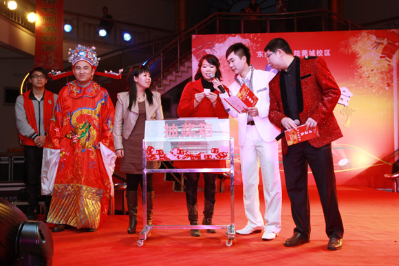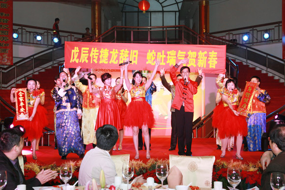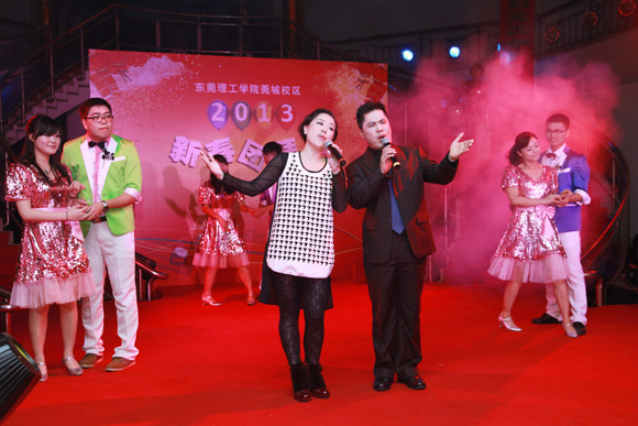 1月26日下午,莞城校区学生活动中心内人潮涌动,灯火璀璨,热闹非常。2013年迎春联欢会在这里精彩上演。 学校领导成洪波、安少华,学校原党委副书记黄碧莲,城市学院、莞城校区相关负责人等来到现场,与教职工共贺佳节,喜迎新春。 联欢会的节目表演以工会小组为单位。各工会小组都展示了精心准备的文艺节目,载歌载舞,轻松幽默,欢快而热烈。莞城校区大部分职工都参与到表演当中,观众即演员,共同营造出欢乐的节日气氛。