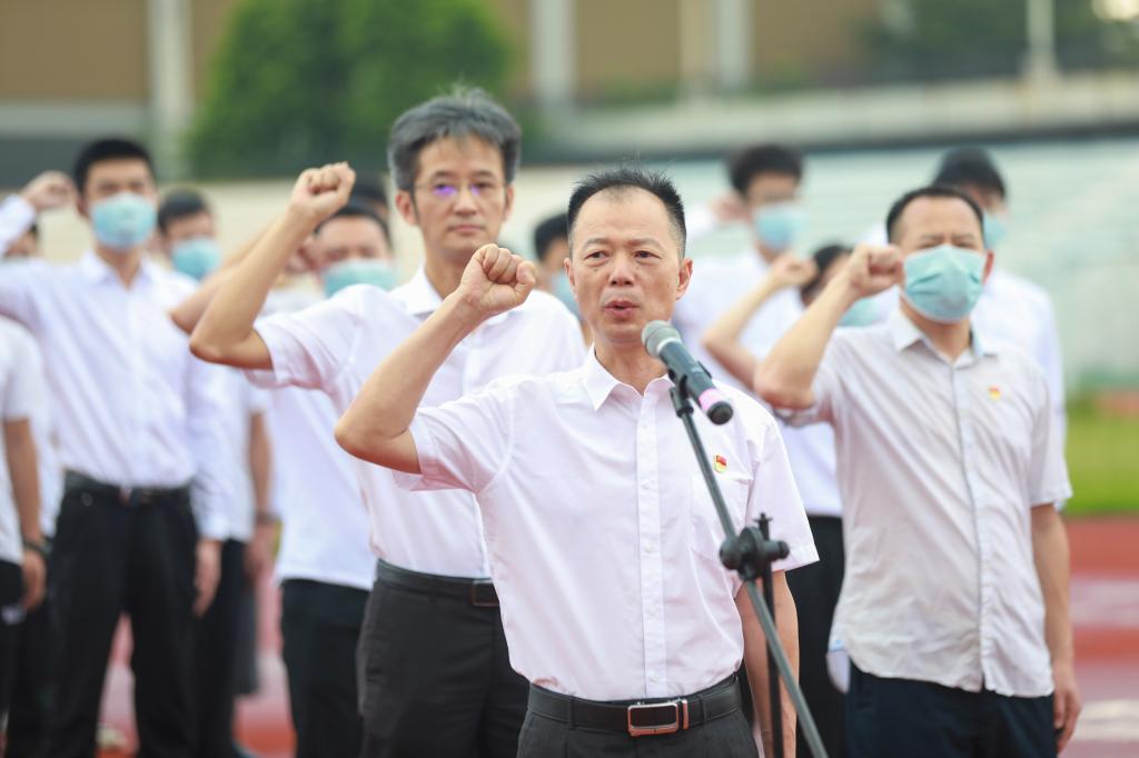 7月1日,在中国共产党成立100周年之际,“七一”升旗仪式暨新党员入党宣誓、老党员重温入党誓词仪式在开云kaiyun官方网站松山湖校区体育场举行。学校党委副书记李忠红、学校新老党员和师生代表参加了本次宣誓仪式。