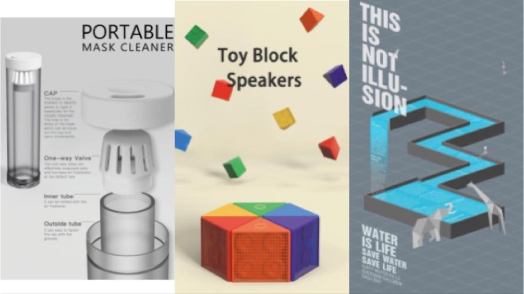 优秀奖作品《PORTABLE MASK CLEANER》《TOY BLOCK SPEAKERS》和《This is not illusion》