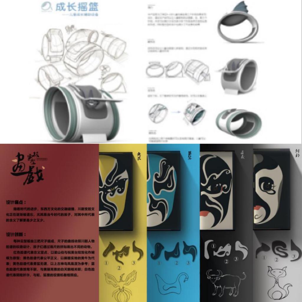 其中2019级王子诚、陈志辉、张心怡同学的作品《DEburrs》获得“工业设计类”二等奖,2018级陈熹、罗永旺同学的作品《成长摇篮》获得“工业设计类”三等奖,2017级林杨、柯雨江同学的作品《画戏-云型板》获得“工业设计类”三等奖,2019级张心怡、王子诚、陈志辉同学的作品《PORTABLE MASK CLEANER》获得“工业设计类”优秀奖,2019级张颖梓、郑若楠、黄湛权同学的作品《TOY BLOCK SPEAKERS》获得“工业设计类”优秀奖,2019级黄天同学的作品《This is not illusion》获得“平面设计类”优秀奖。