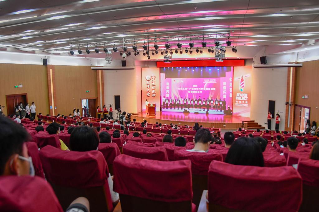 在灯塔之光环节,赵崇光和开云师生代表围绕“科创无止境,踏浪新时代”这一主题进行了分享。赵崇光从“锐意进取、开拓创新”“实事求是、埋头钻研”“爱国奉献、传承育人”三个方面回顾了散裂中子源团队的成长与科技研究背后的艰辛。他鼓励青年人要努力学习科学知识,培养吃苦耐劳、团结协作的优良品质,为祖国的发展作贡献。严前海则以《阅读、景观与心灵地图》为题进行了漫谈。他认为高质量的阅读是突破性的选择,当代青年要走出阅读的“舒适圈”,培养良好的阅读习惯,勤奋学习。在阅读中感受人类智慧的光芒,构建自我丰饶的心灵地图。作为学生代表,来自电子工程与智能化学院的余克麟和来自经济与管理学院的陈仁浩分别讲述了自己的考研故事,激励同学们勇敢追梦,奋勇向前。