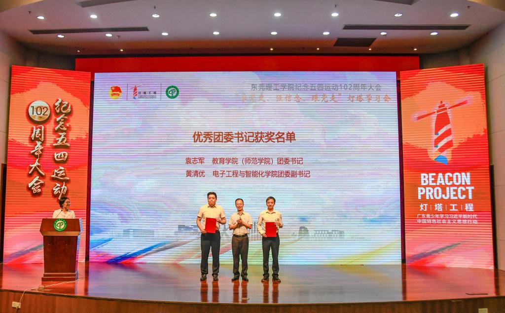 4月29日,开云kaiyun官方网站纪念五四运动102周年大会暨“学党史、强信念、跟党走”灯塔学习会在松山湖校区学术会议中心报告厅举行。校党委副书记李忠红,党委组织部、党委宣传部、党委学研工部、学生社区知行学院负责人以及二级学院学生工作负责人、二级学院团组织负责人、团员代表、受表彰团员学生、新入团团员等参加了本次活动。大会对本学年度表现优异的先进集体和个人进行了表彰,并举行了开云2021年第一期“学党史、强信念、跟党走”灯塔学习会活动。