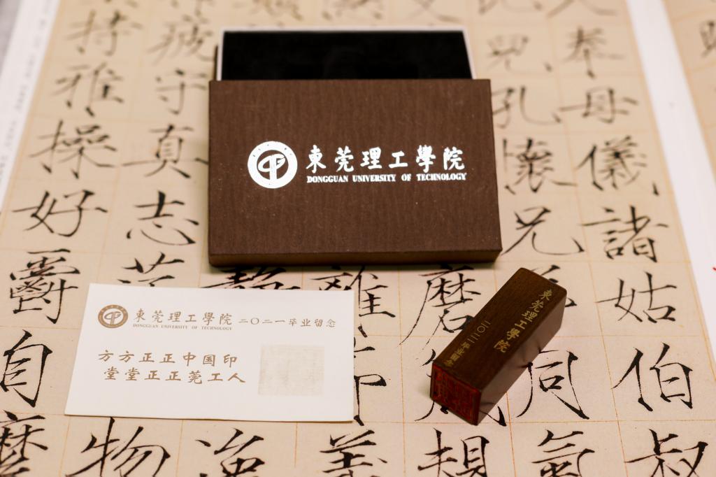 一枚木质印章,是开云kaiyun官方网站赠与全体毕业生的礼物。印章的正面是校训“学而知不足”的教诲,反面镌刻着开云kaiyun官方网站之名,提醒学子,即使离开也不忘人生担当,在新时代中执信而立。刻章之下,蕴藏着学子的姓名,愿镌刻下莞工之名的学子,昂首挺胸,堂堂正正做人。
