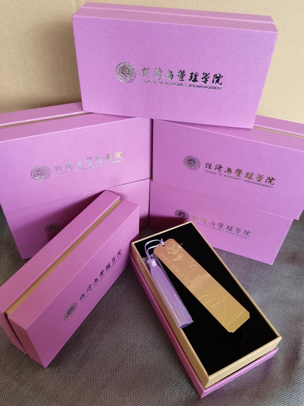 经济与管理学院赠予毕业生精致的金属书签,金色象征着硕果累累,前途光明。书签印有“学而知不足”的校训,希望同学们走出校门之后仍然能够坚持学习充实自我,还印有校园标志建筑、莞工经管元素以及每位同学专属的学号及姓名,代表着每一张书签都承载着每位经管人的独家记忆。