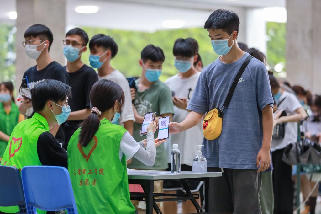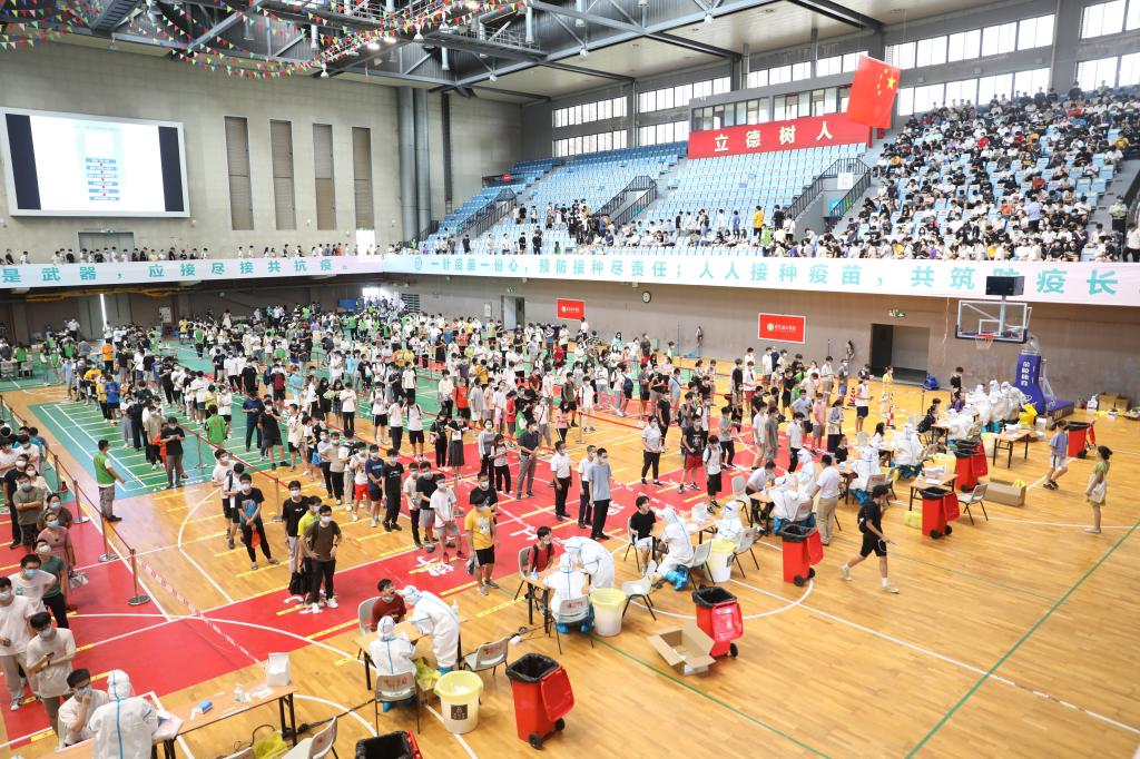两校区共设置了22个核酸检测采样点,师生员工在各二级单位组织下,提前备好“葵花码”,佩戴好口罩,按照要求依序排队等候。