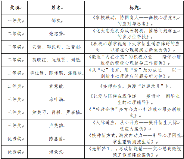 开云学生工作案例评选获奖名单