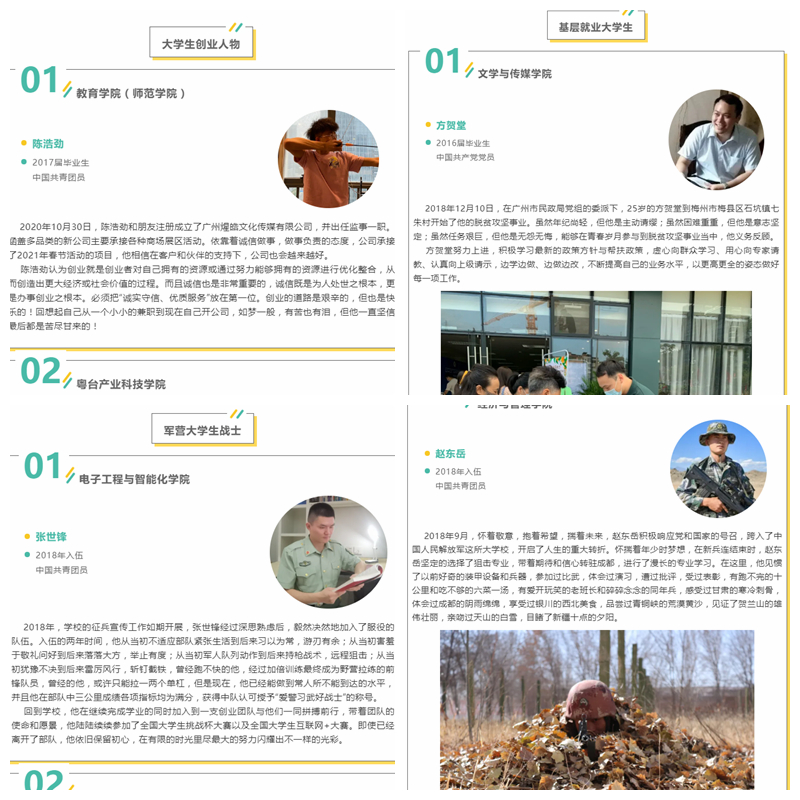 学校坚持立德树人根本任务,深入推进“三全育人”综合改革,注重培育学生家国情怀的就业观。下发了《开云kaiyun官方网站应届毕业生到国家(地方)基层项目就业奖励办法(试行)的通知》,深入挖掘基层就业大学生、大学生创业人物、军营大学生战士人物典型事迹,广泛宣传报道,引导学生到基层就业。通过思政课程、课程思政和日常思想政治教育工作,鼓励学生树立远大理想。将就业工作融入教育教学工作方方面面,健全协同育人机制,不断提高就业育人工作质量和实效。加强就业实践教育,引领学生将“小我”融入“大我”。组织在校生成立援藏支教志愿服务队,组织毕业生到基层和粤港澳大湾区重点企业实习锻炼,通过实地走访交流,让毕业生深刻理解什么是国家需要和时代召唤,自觉把民族复兴重任记在心间、扛在肩上。