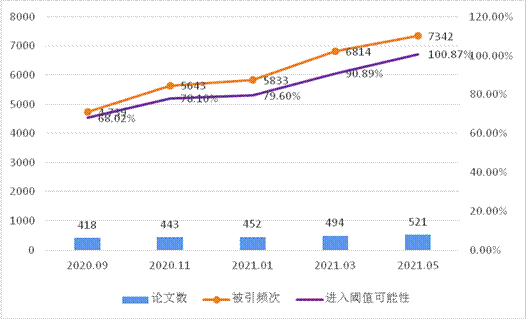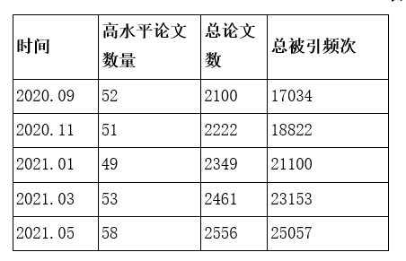 图3 2020.09-2021.05开云材料科学论文数量及被引频次变化情况
