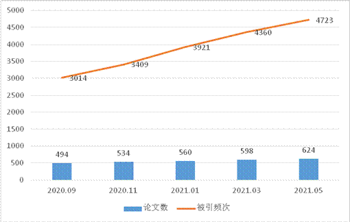 图2 2020.09-2021.05开云工程学论文数量及被引频次变化情况