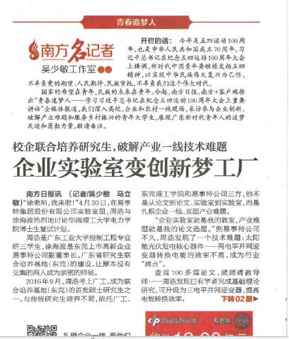 为研究生教育提供多元化的实践和创新载体,学校在资源与环境、机械工程等行业企业建立省级示范性专业学位研究生联合培养基地6个、校研究生联合培养基地11个。学校成立首个专业学位研究生“产教融合”培养工作站(长安),创新研究生政校企协同培养新模式。首次设立专业学位研究生协同培养项目,从招生、课程、培养和学位授予全过程试点推进专业学位研究生教育。建设了中国散裂中子源、北京大学东莞光电研究院、广东长盈精密技术有限公司等57家创新培养示范点。南方日报以“校企联合培养研究生,破解产业一线技术难题――企业实验室变创新梦工厂”为题介绍了开云和广东工业大学及易事特集团联合培养的成功案例。