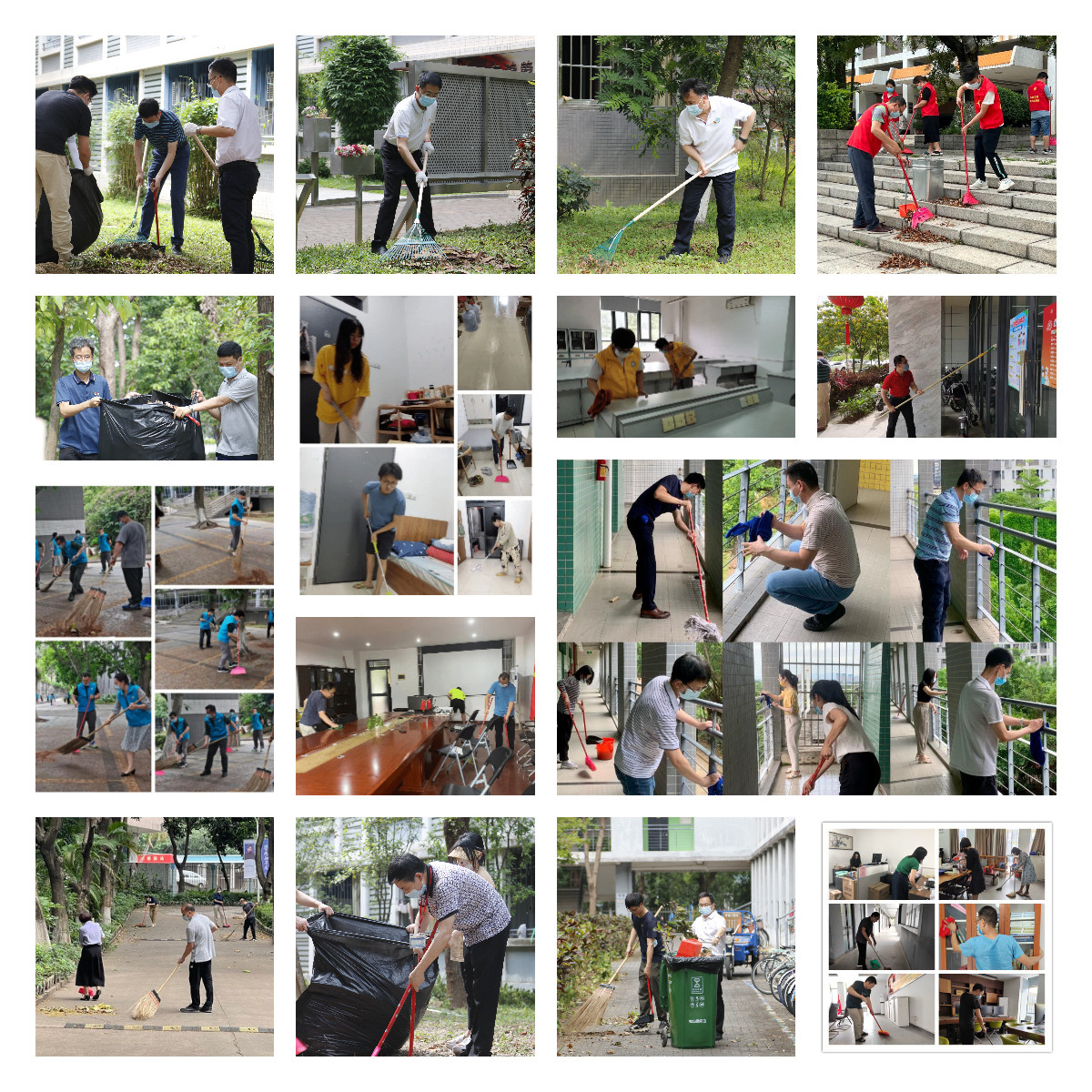 机关党委以支部为单位进行分组分区,对学生社区进行全方位、无死角清洁,学校领导以普通党员身份参与活动。活动现场,一片热火朝天景象,虽有烈日炎炎,但大家的热情高涨、干劲充足,党员们分工合作、默契配合,扫枯叶、拖地板、擦门窗、清垃圾、摆单车……在众人的团结协作下,学生社区面貌焕然一新。此外,后勤党总支组织全体党员发扬连续作战精神,对学校食堂、学术会议中心周边环境等地进行清洁。图书馆党总支、科创院直属支部和各二级学院纷纷组织师生党员对办公区域和教学区域进行了卫生清洁。疫情之下的校园经过汗水的洗礼,重新焕发蓬勃生机,为师生返校复课提供了整洁的环境保障。
