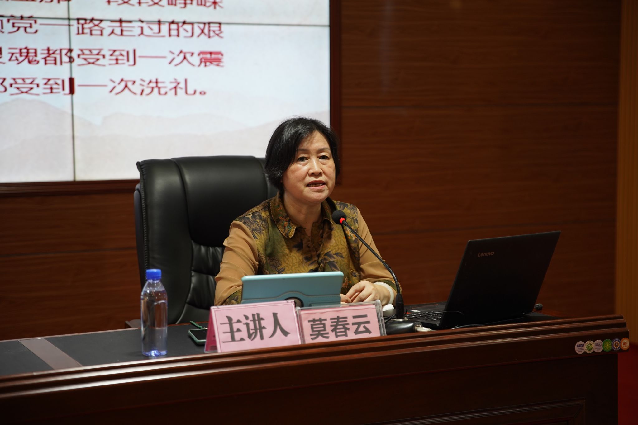 在理论专题教学中,汕尾市委党史研究室副主任莫春云作题为《海陆丰革命精神》的专题报告,她从海陆丰革命老区的历史地位和重大贡献、海陆丰革命精神的丰富内涵和时代价值、充分释放海陆丰红色资源的巨大潜力三个方面展开阐释讲解,对海陆丰人民在开展反抗国民党反动派的斗争、创建全国第一个县级苏维埃政权、率先实行土地革命等进行系统阐述。