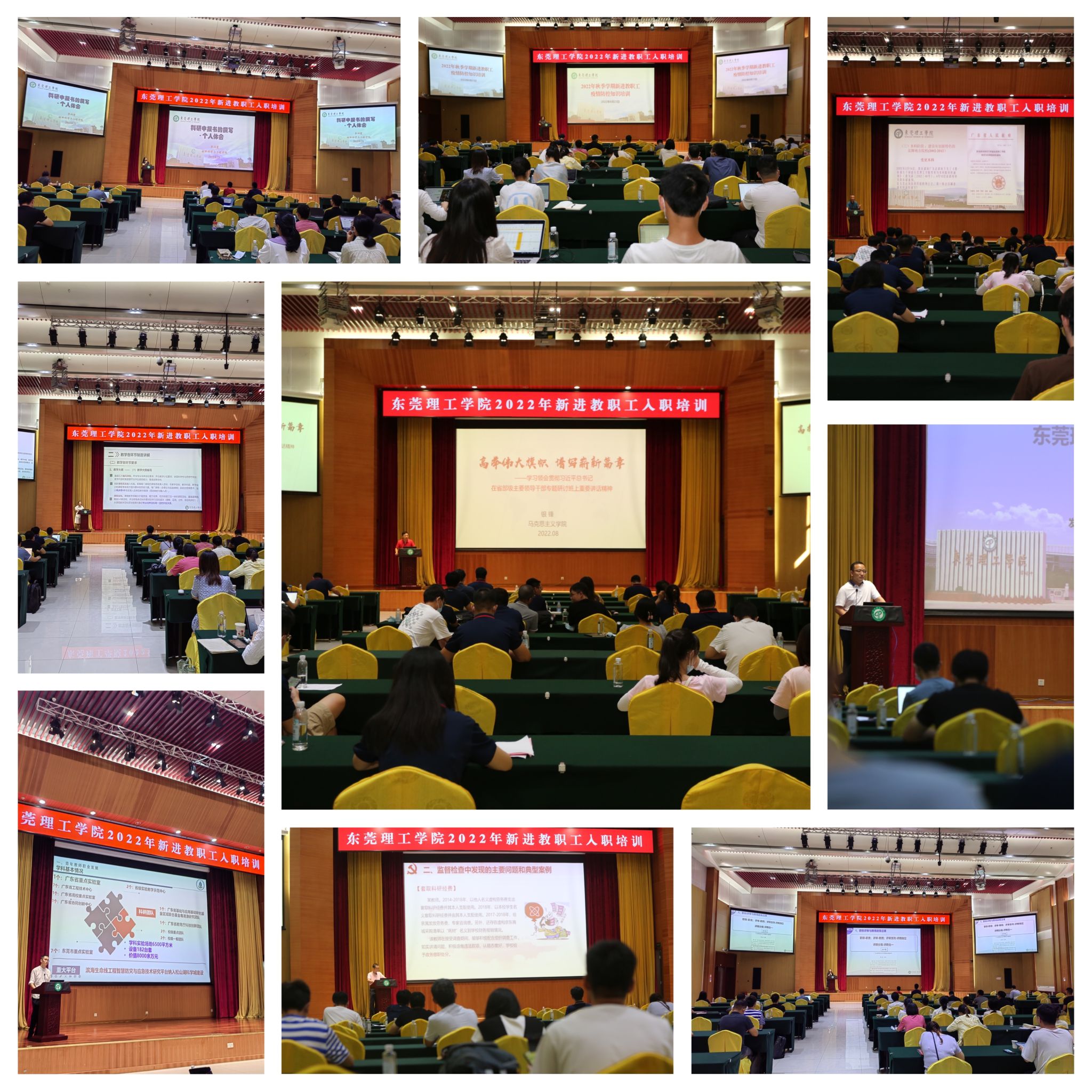 为期3天的集中培训,围绕学习贯彻习近平总书记在省部级主要领导干部专题研讨班上的重要讲话精神、省第十三次党代会精神、学校章程解读、校史校情专题教育、学习践行新时代高校教师职业行为十项准则和师德师风问题典型案例警示教育、疫情防控专题教育、廉洁从教专题教育、基本教学规范、科研申报书的撰写、职称政策解读、地方应用(研究)型大学青年教师成长感悟等内容开展。本次培训还按《广东省教育厅转发教育部办公厅关于开展2022年暑期教师研修的通知》要求,将暑期教师研修课程纳入培训,作为新进教职工的必修课程。