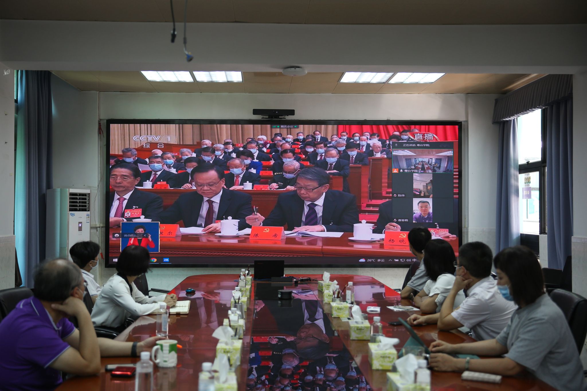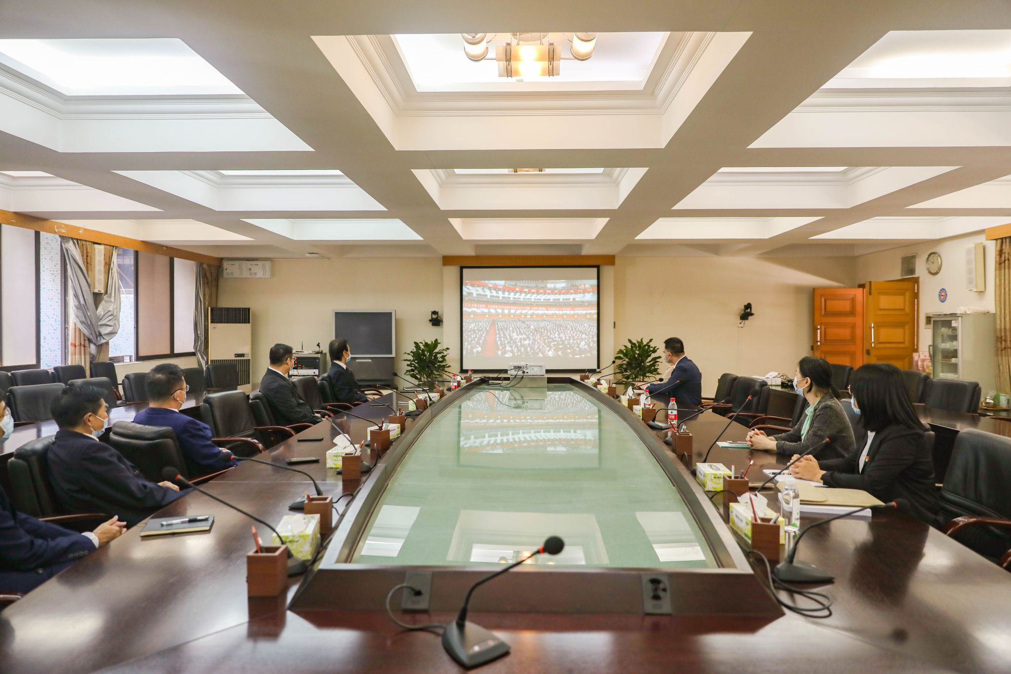 学校领导,党政管理机构、群团组织、直属机构、产业机构的中层干部在松山湖校区学术会议中心多功能厅和莞城校区4号楼315会议室进行线下集中观看,各二级学院党政班子于各学院分会场组织线下集中观看,全校师生分别在办公室、活动室、宿舍、实验室等场所通过线上方式收听收看了开幕会直播,反响热烈,大家畅谈感受和体会。