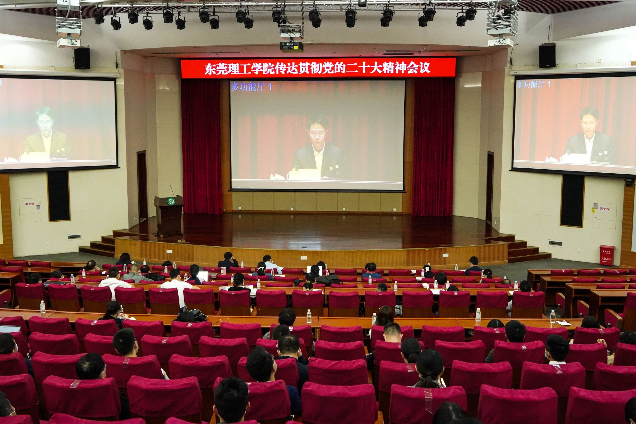 本次会议采取“线上+线下”相结合的方式进行,在两校区开设四个会场,主会场在松山湖校区学术会议中心多功能厅。全体校领导、中层干部、民主党派负责人、党支部书记、马克思主义学院教师代表参加会议。