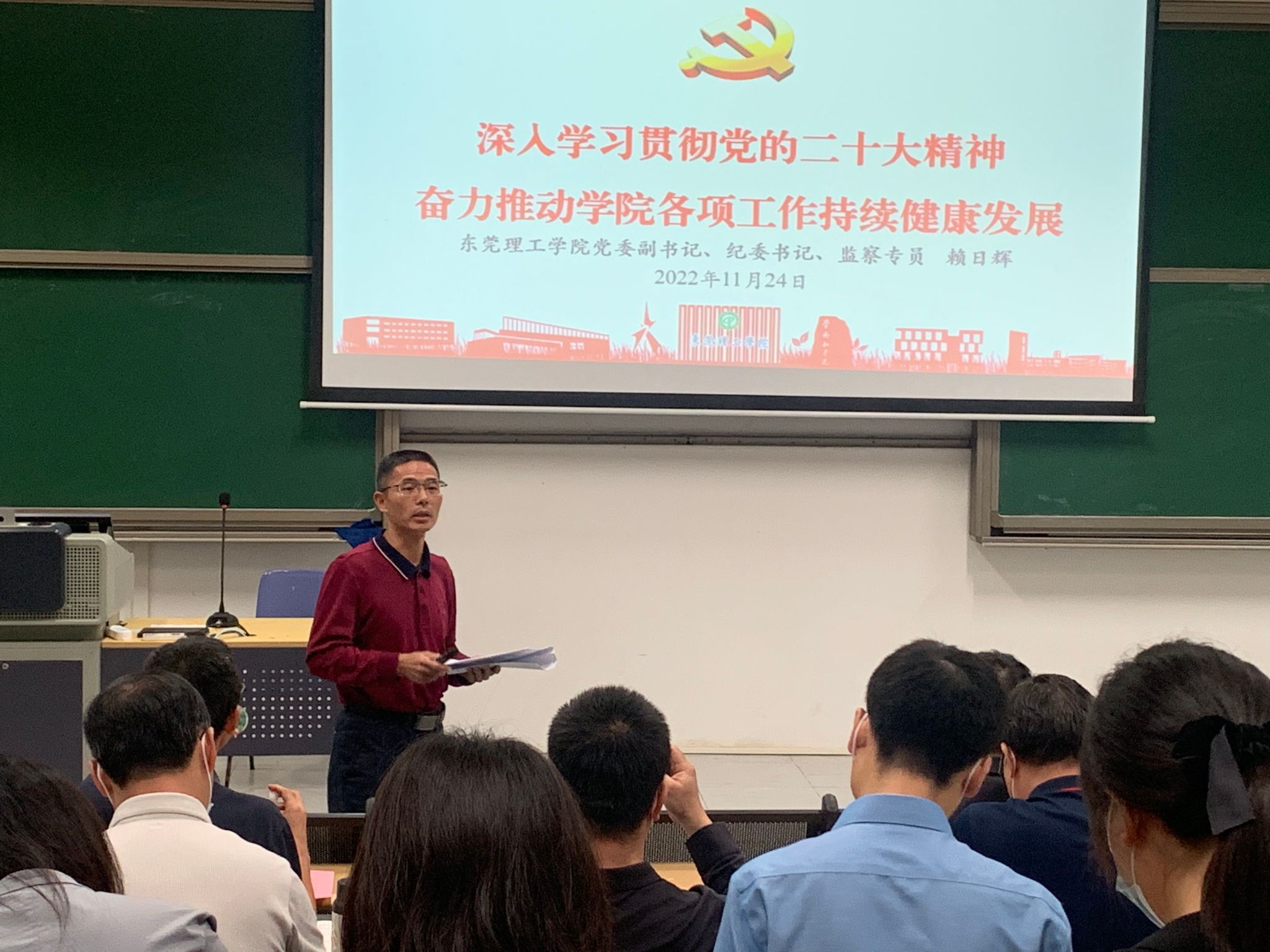 校党委委员、副校长李文芳在莞城校区开展党的二十大精神宣讲,继续教育学院、莞城校区管委会领导班子以及各党支部委员参加。