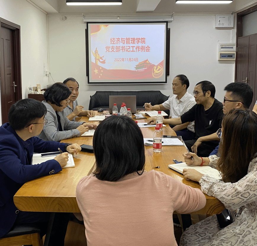 经济与管理学院召开党支部书记工作例会,学院党委书记杨继学作党的二十大精神宣讲,并对党支部书记如何做好带头宣讲、促进学习全覆盖进行了现场辅导。