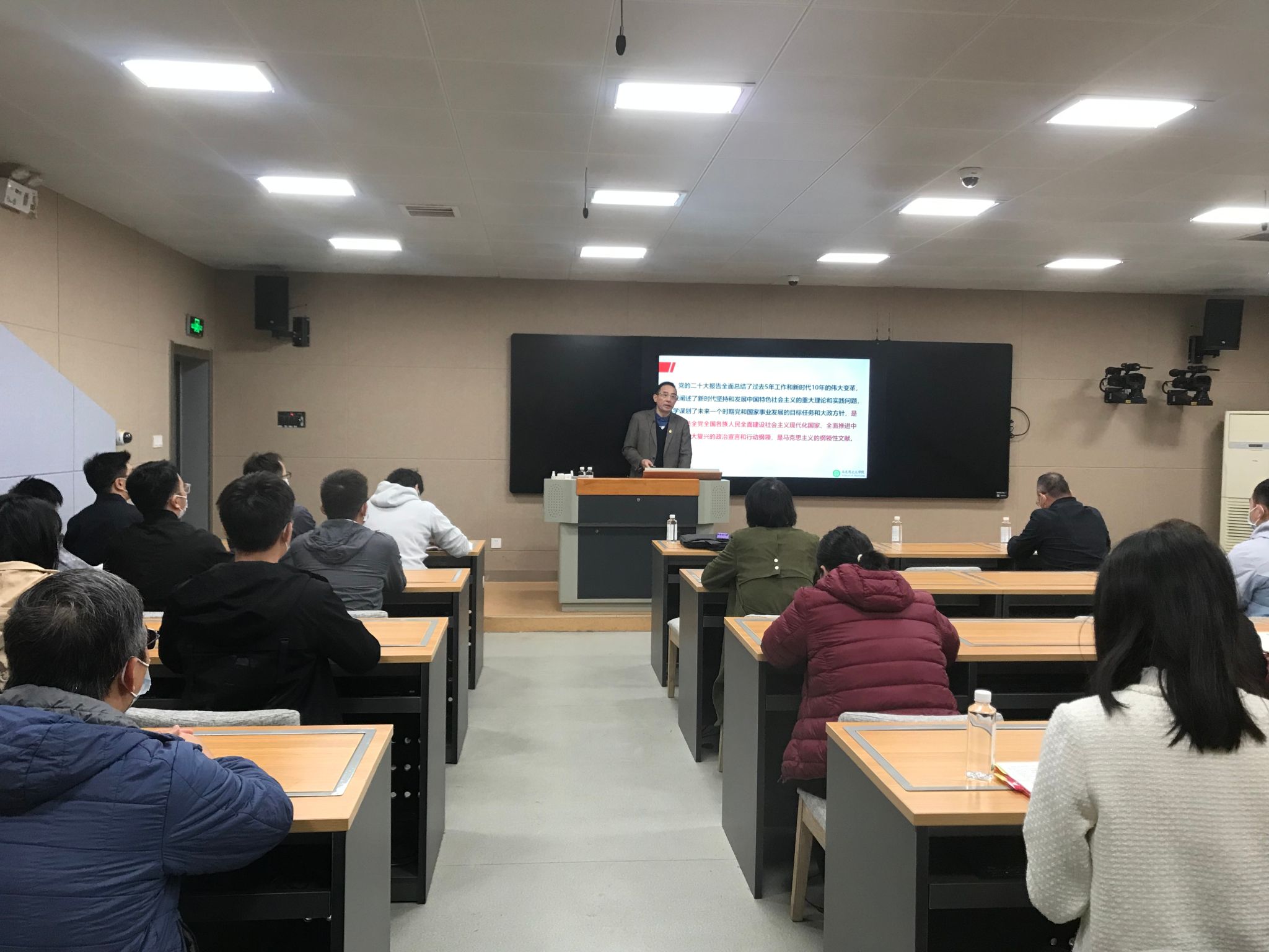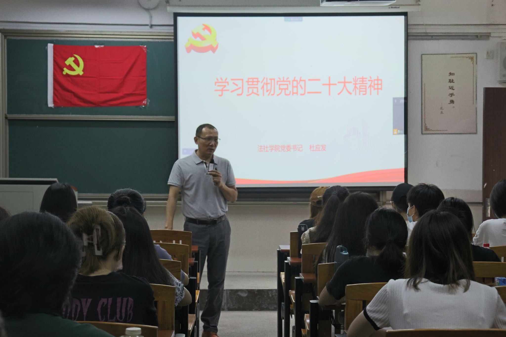 法律与社会工作学院(知识产权学院)党委书记杜应发为学院教师党员、入党积极分子作党的二十大精神宣讲。