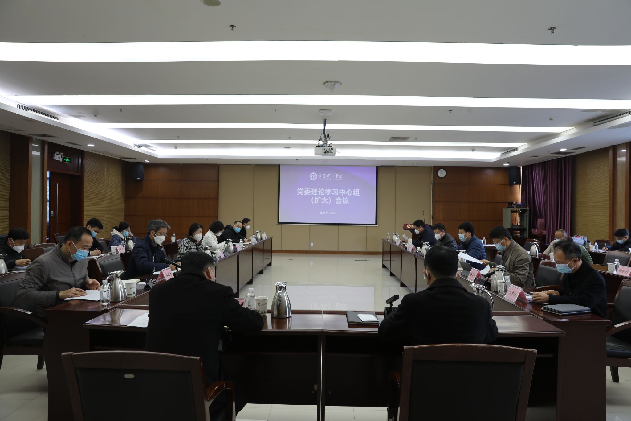 1月5日,学校召开党委理论学习中心组(扩大)学习会,持续深入学习贯彻党的二十大精神,坚持全面依法治国,贯彻落实教育、科技、人才工作“三位一体”战略部署,坚持依法治校,完善规章制度体系建设,加快推进新型高水平理工科大学建设。校党委书记成洪波主持会议并作专题发言,校领导马宏伟、李忠红、杨敏林、李文芳作重点发言,党委委员彭晓波、胡钦华、邹琼,纪委副书记邢大立,相关职能部门负责人参加会议。