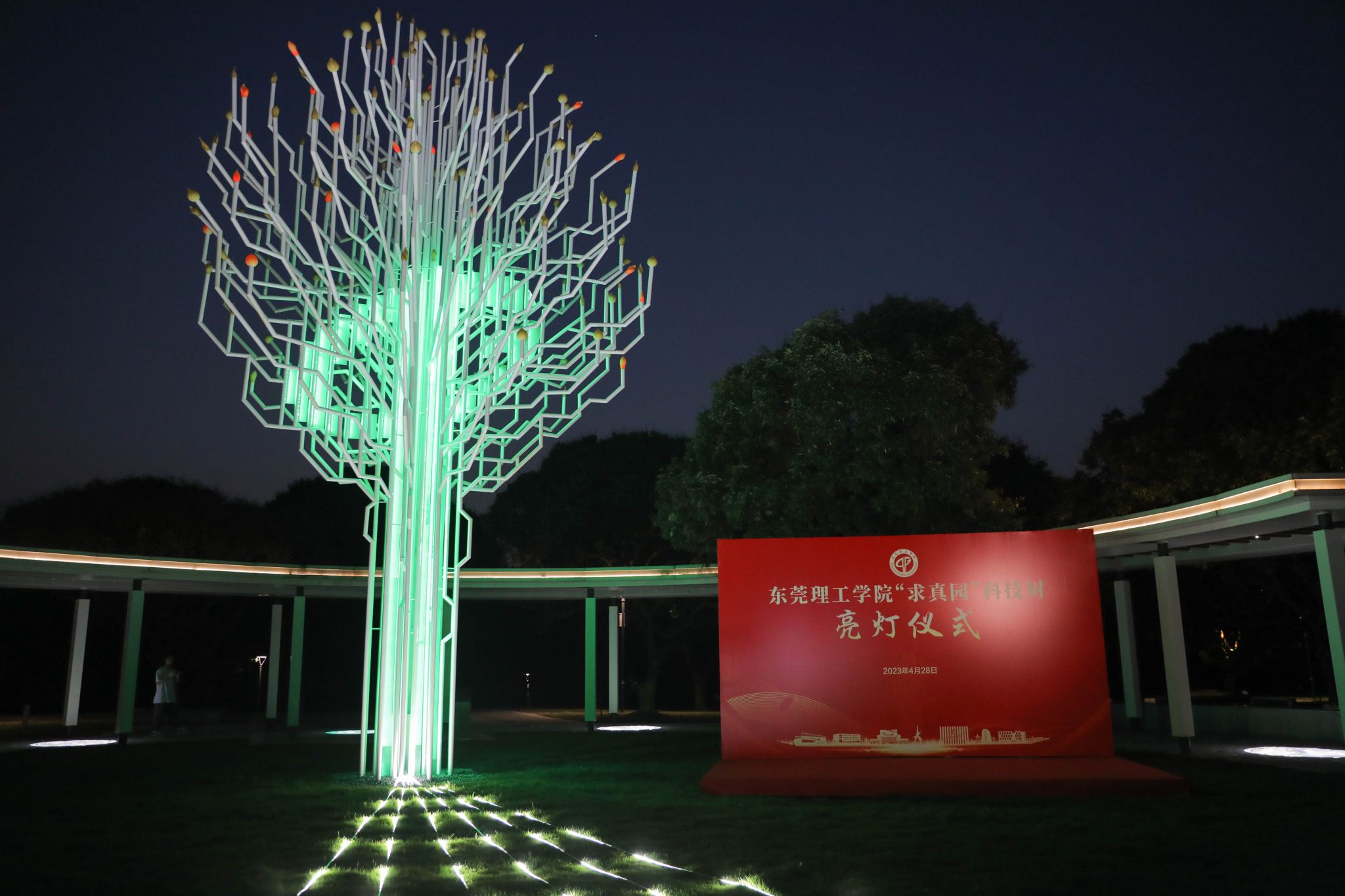 4月28日,开云kaiyun官方网站求真园文化广场在莞工31周年校庆之际正式启用,当晚求真园内的科技树举行亮灯仪式,点亮莞工夜空。