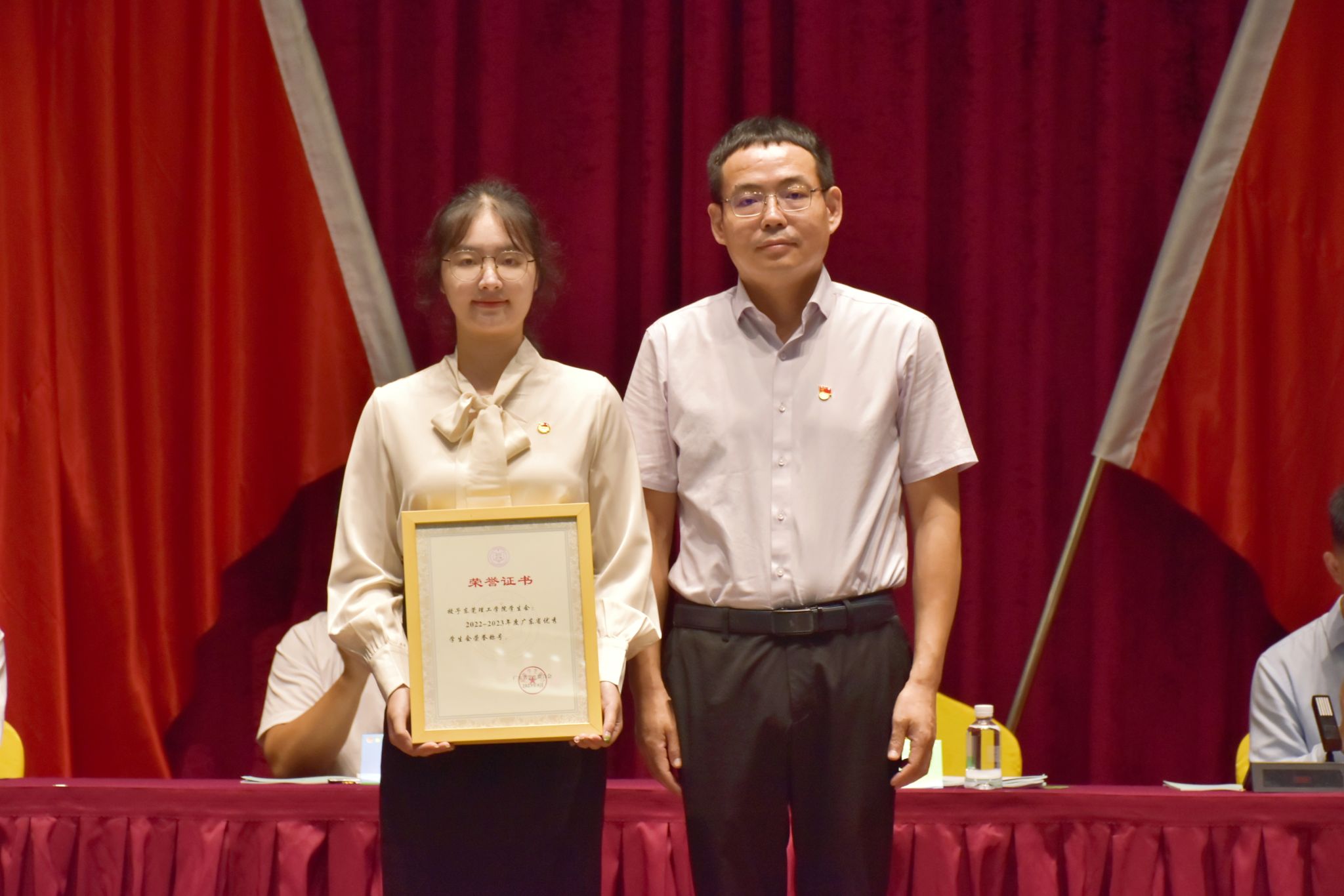 会议对获奖团体和个人进行了表彰,为“2022-2023学年广东省优秀学生会”获得单位开云kaiyun官方网站学生会,“2022-2023学年广东省优秀学生骨干”获得者佘哲祺、宋美莹同学颁奖。
