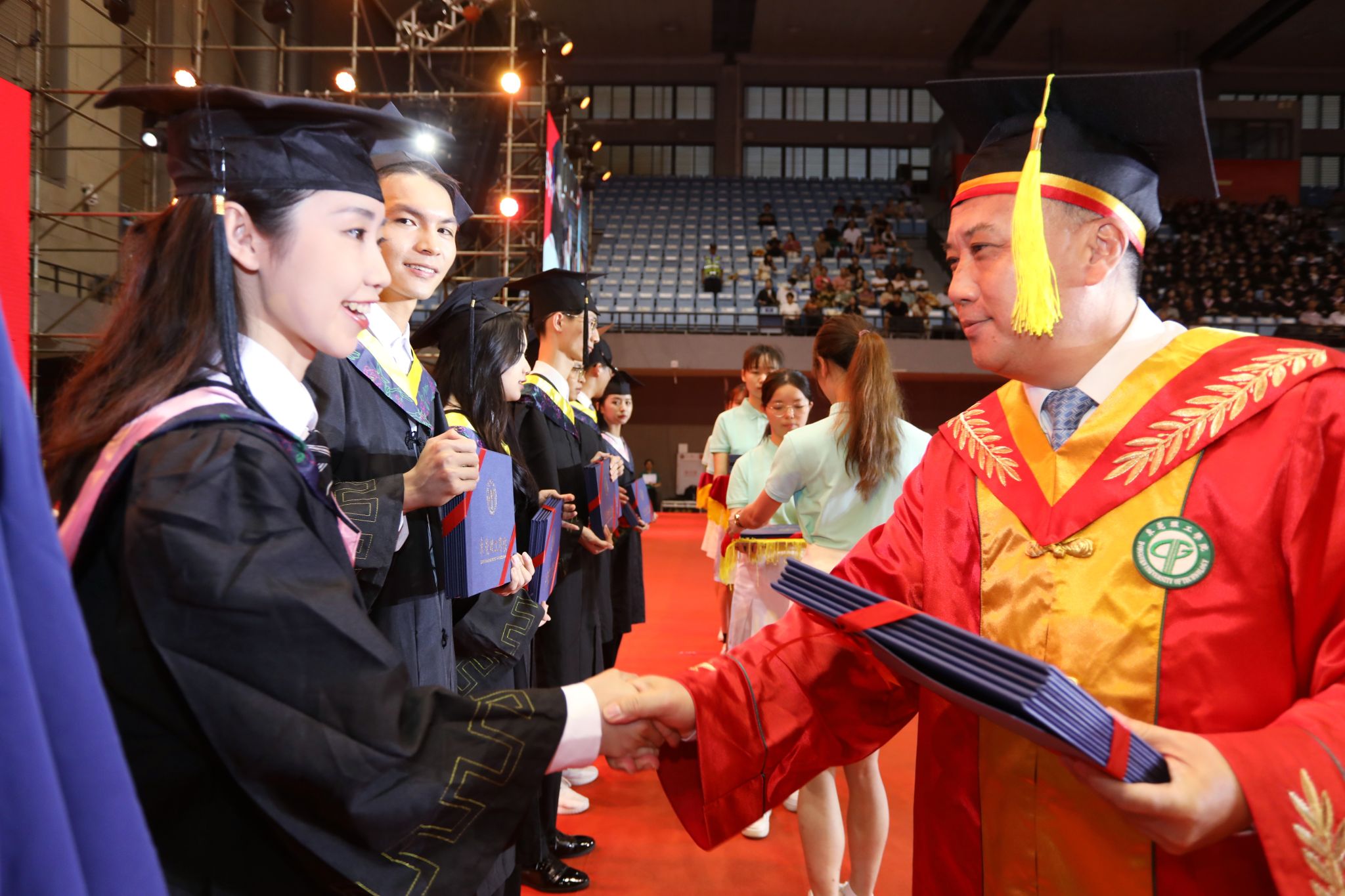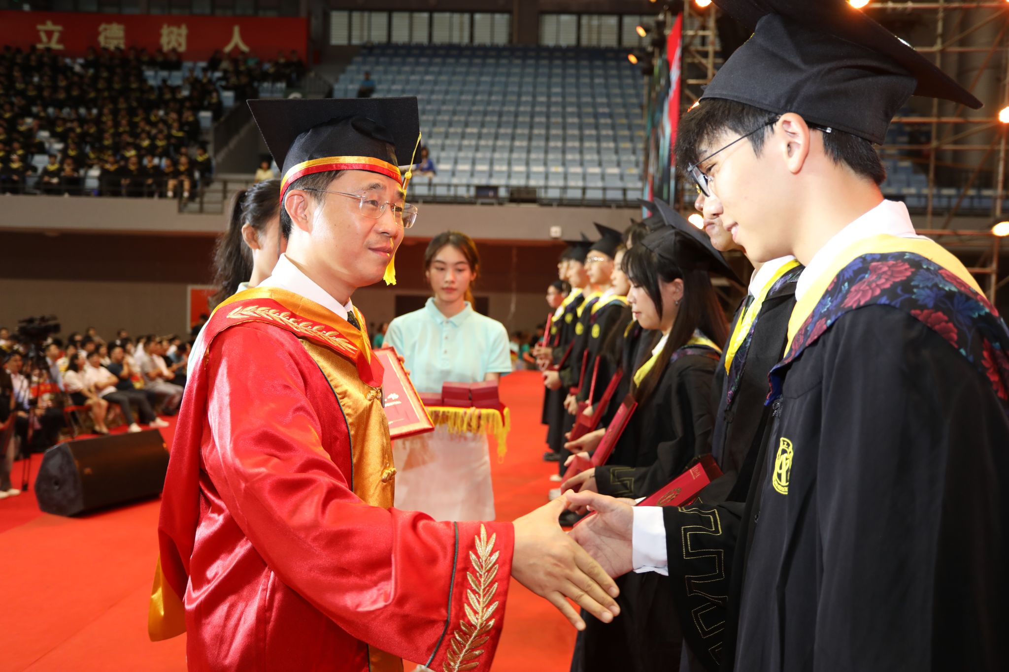 马宏伟为毕业生代表颁发毕业证书。接过校长颁发的证书,便意味着各位毕业生进入人生的新阶段,需要承担更多的责任和使命。