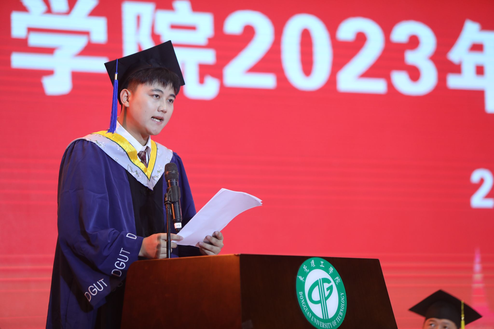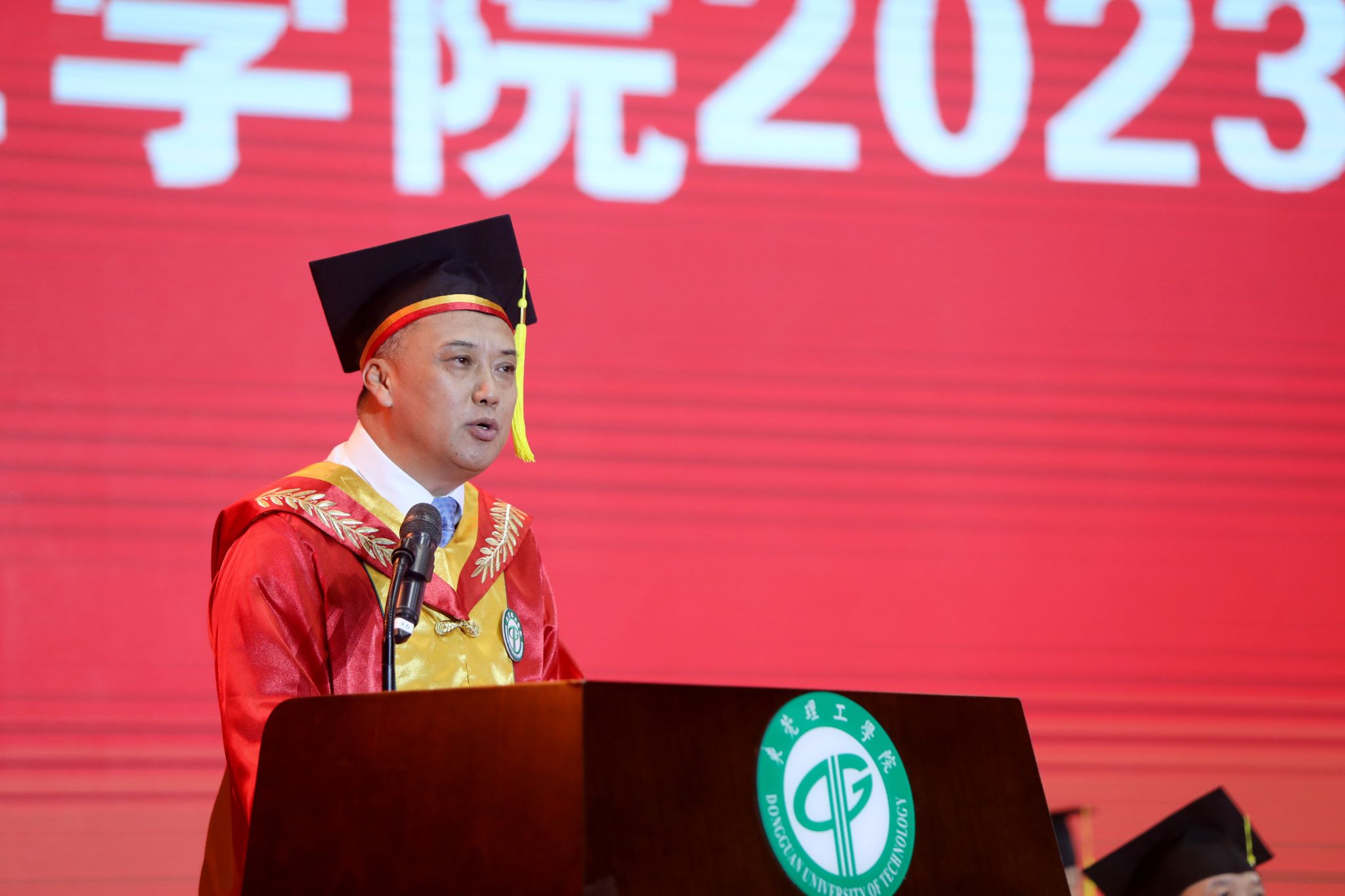 毕业典礼上,马宏伟深情寄语2023届毕业生。他表示,在莞工,同学们见证了伟大祖国繁荣富强、各项事业蒸蒸日上,积极参与和推动了学校高质量跃升发展,书写了动人的奋斗故事。作为校长,他由衷地为同学们感到骄傲。