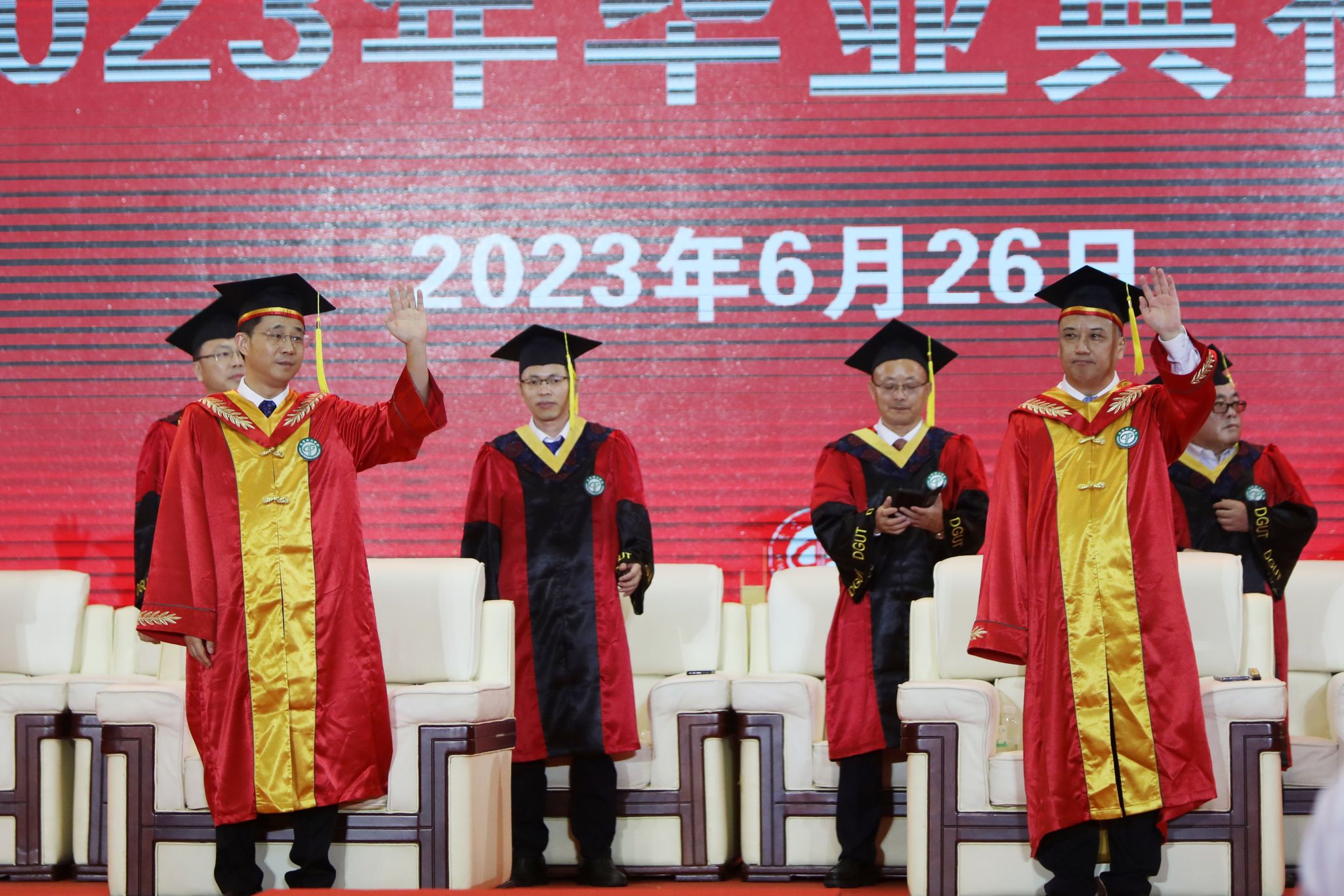 6月26日,开云kaiyun官方网站2023年毕业典礼暨学位授予仪式在松山湖校区体育馆举行。在师长亲友的见证下,2023届4458名本科生、174名研究生与莞工挥手告别,正式道一声“再见”。