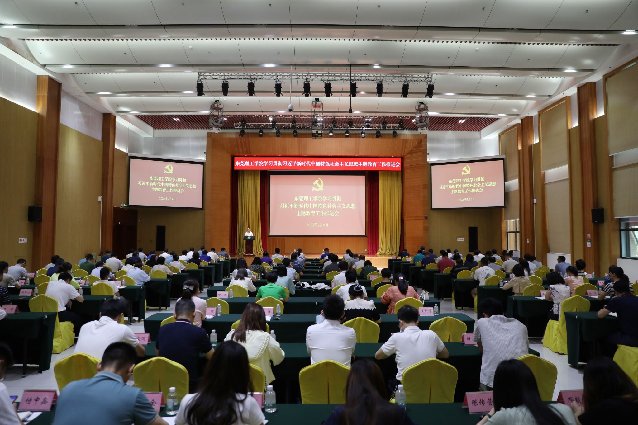 会上,学校党委书记成洪波围绕“深入学习贯彻习近平新时代中国特色社会主义思想,在高质量发展中走在前列多做贡献”主题作专题党课。他强调,要深入贯彻落实习近平总书记视察广东重要讲话、重要指示和在中共中央政治局第五次、第六次集体学习时重要讲话精神,坚持不懈用习近平新时代中国特色社会主义思想凝心铸魂,进一步凝聚全校党员干部、师生员工智慧力量,主动服务国家战略需求,全面落实“申博扩硕强本科、提质增效上水平”重点任务,加快推进新型高水平理工科大学示范校建设,走在高等教育高质量发展前列,当好地方院校改革创新尖兵,在推进广东制造业当家和东莞科创制造强市建设中发挥不可替代的作用。