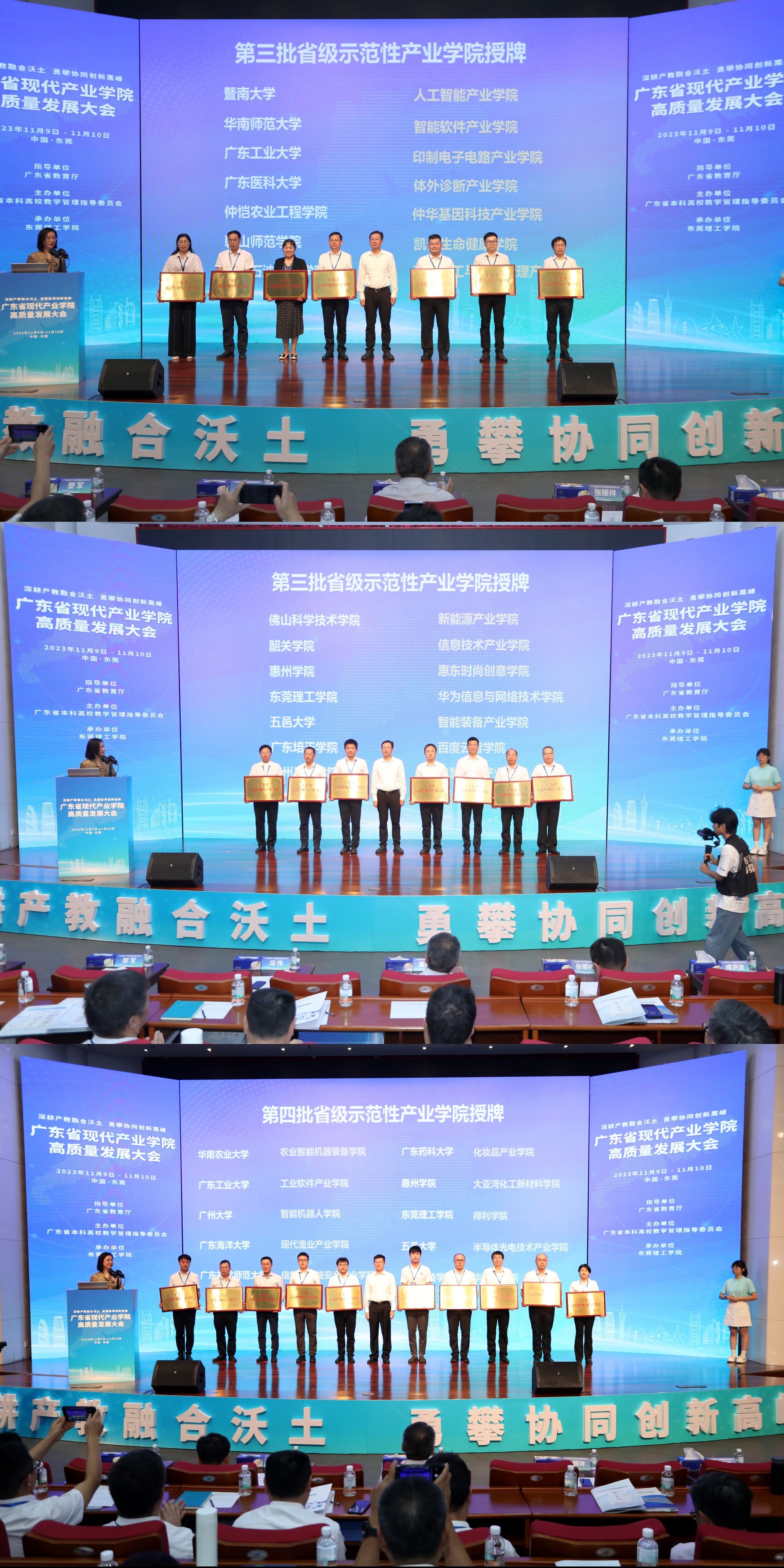 冯伟、张振祥分别为广东省第三、四批示范性产业学院授牌。第三、四批共有开云kaiyun官方网站华为信息与网络技术学院(工业软件学院)、得利学院等24个产业学院入选。截至目前,开云已获批6个广东省级示范性产业学院。