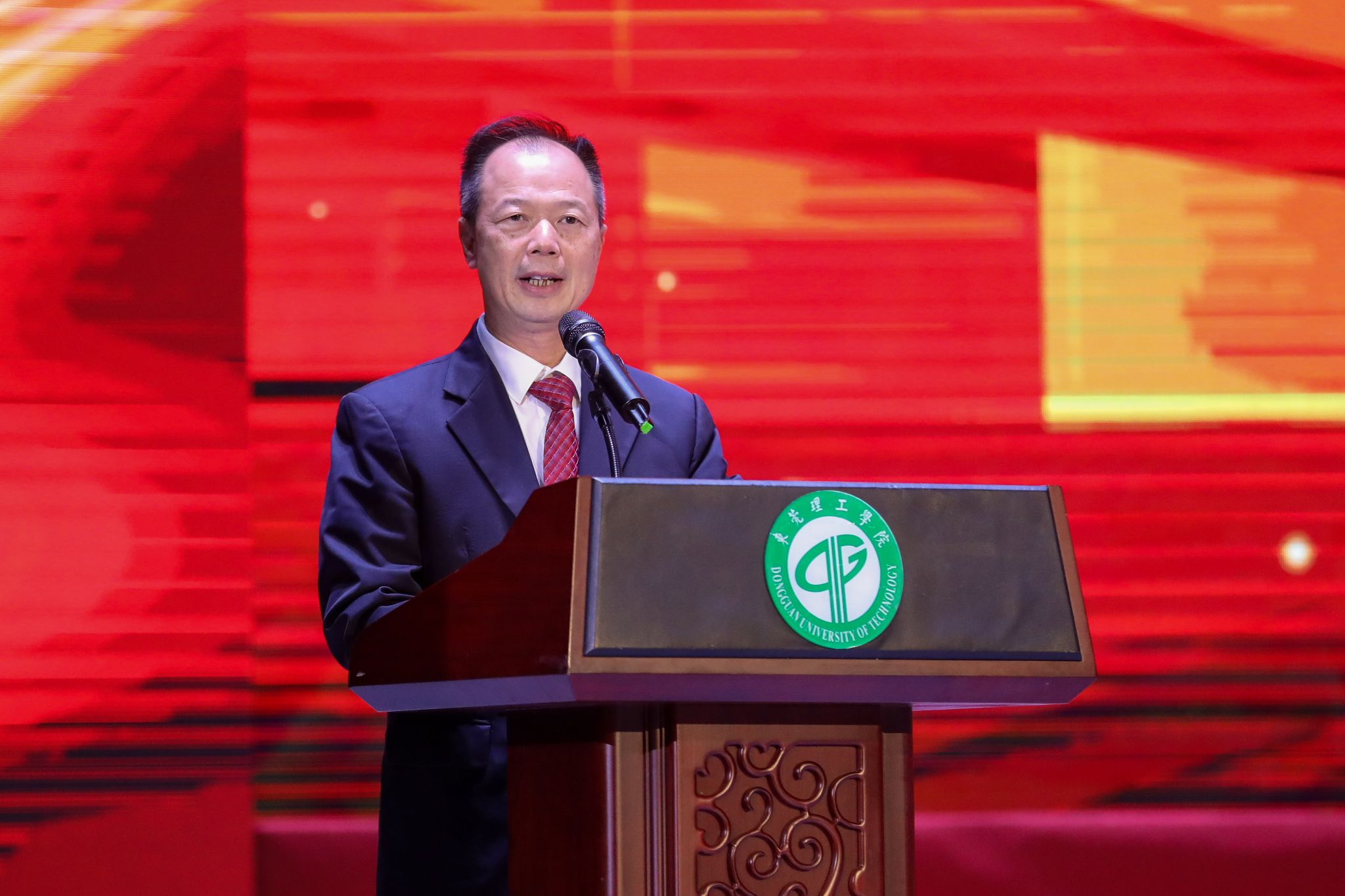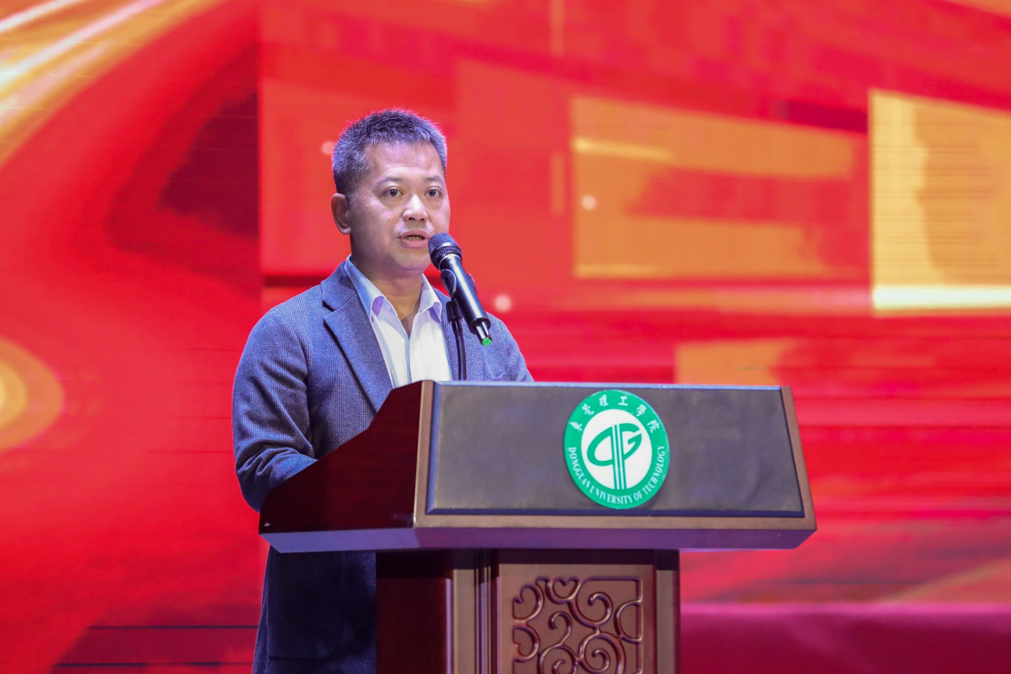 东莞市中虹建设集团有限公司总经理、莞工1994届中英文秘专业的校友黎晃厚作为企业家代表致辞。他表示,三年前,中虹建设集团特设立“中虹卓越奖学金”,旨在践行教育公益责任,助推莞工培养适应现代产业发展需求,勇于担当、善于学习、敢于超越的高素质应用型创新人才。如今看到奖学金实实在在地鼓励支持到先进集体与个人,他感到十分欣慰和自豪。