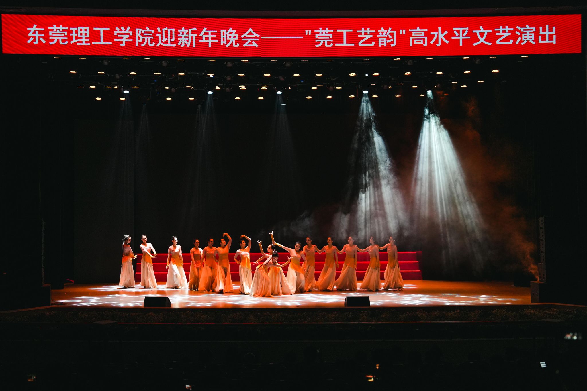 旧年既去,新年将启。颁奖礼后,来自教育学院(师范学院)的“莞工艺韵”艺术团为全体师生带来一场气势恢弘的迎新年晚会,以润物无声又直击心灵的艺术话语向辛勤工作的全校师生们致以节日的问候。