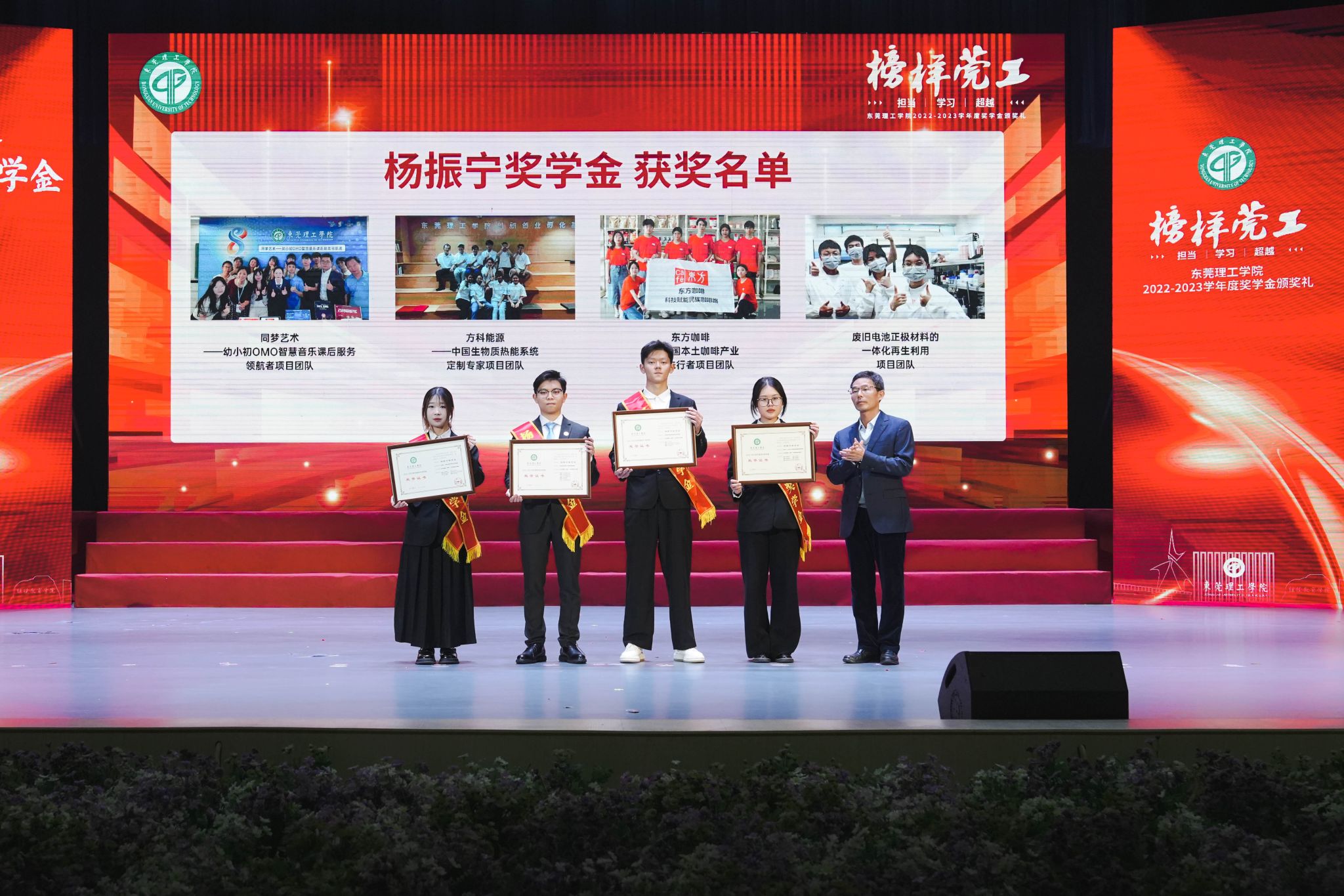 “同梦艺术——幼小初OMO智慧音乐课后服务领航者”“方科能源中国生物质热能系统定制专家”“东方咖啡——中国本土咖啡产业振兴先行者”“废旧电池正极材料的一体化再生利用”等4个项目团队获得“杨振宁奖学金”。