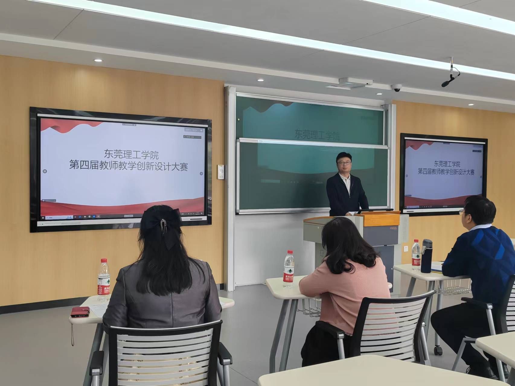 本次大赛分职称组和课程思政组,由网络评审和现场评审两个环节组成。共42名老师报名参加比赛,经过初审和网络评审后,14位老师进入现场决赛环节。决赛于1月5日在智慧教室6D308举行。决赛开始前,教务部部长王红成作了讲话,副部长张伟伟宣读了比赛规则。